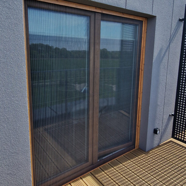 Moskitiera plisowana działa w oparciu o system prowadnic, w których siatka składa się w formie harmonijki. Otwieranie i zamykanie odbywa się płynnie, bez sprężyn i gwałtownych ruchów. Po zsunięciu moskitiera zajmuje minimalną przestrzeń, pozostając niemal niewidoczna, gdy nie jest używana.