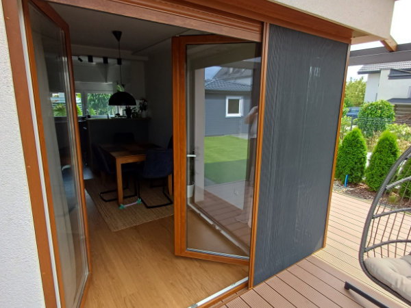 Moskitiera otwierana i zamykana jest ręcznie, w sposób płynny i intuicyjny. Siatka składa się harmonijkowo w prowadnicy, bez użycia sprężyn.