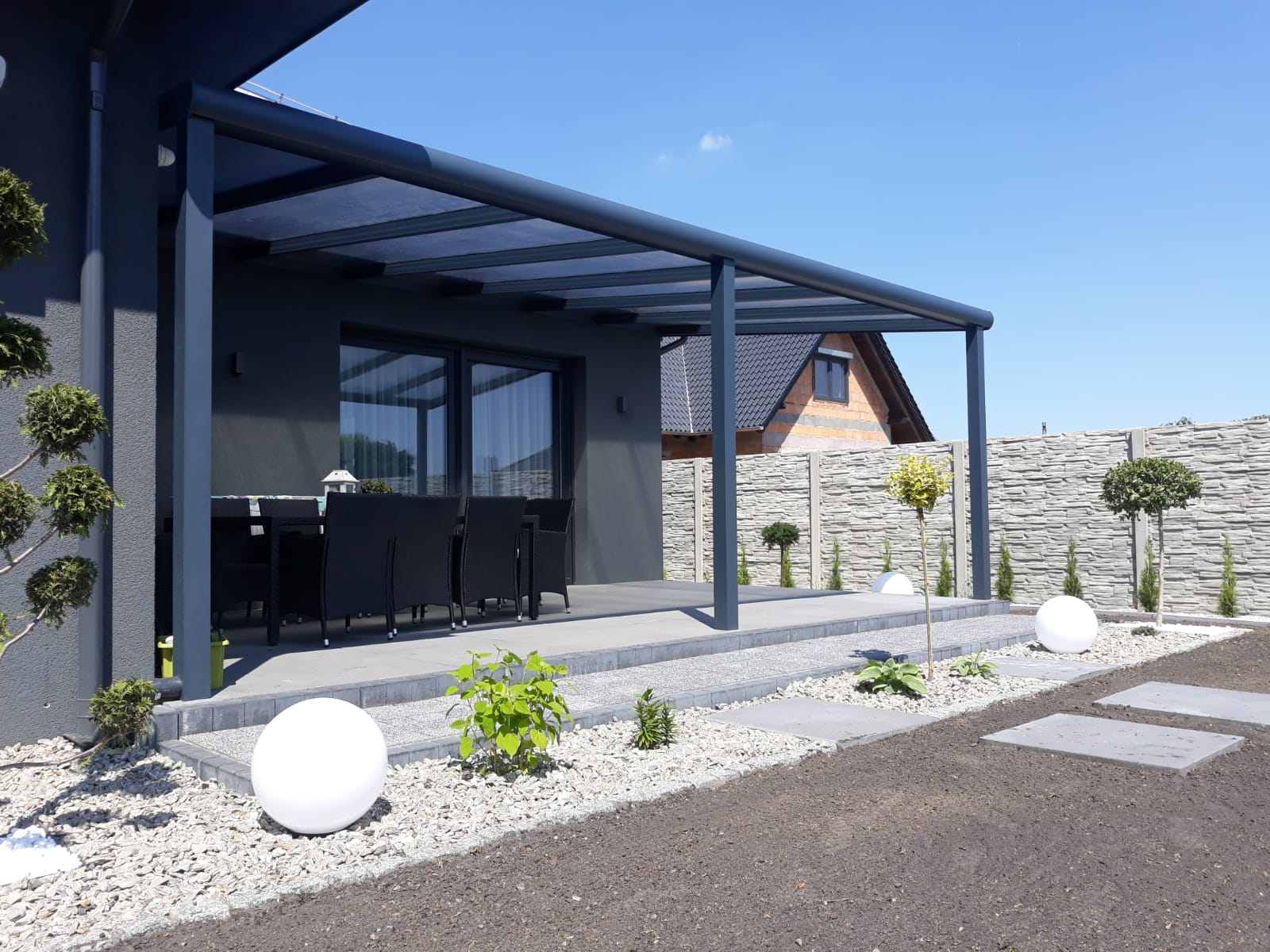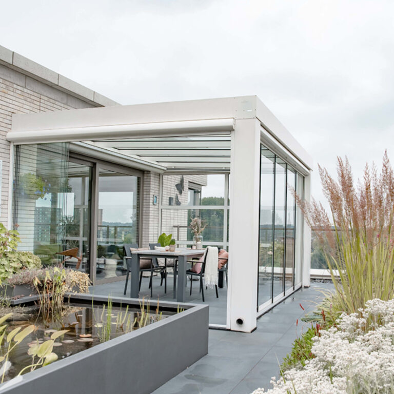 Nie boimy się nietypowych zleceń i skomplikowanych realizacji – od zadaszeń narożnych, przez niestandardowe wykończenia zintegrowane z elewacją lub pergolą, aż po zadaszenie tarasu na dachu. Podejmiemy się każdego wyzwania!
